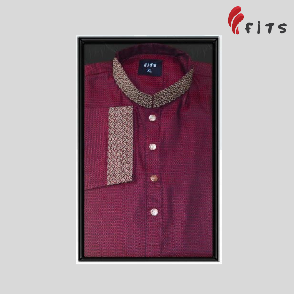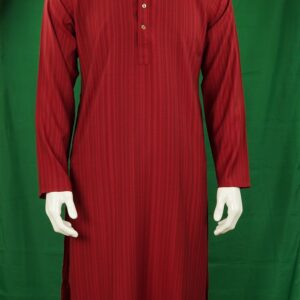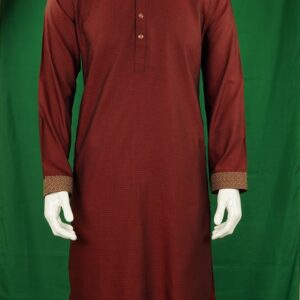 Shiny Red Maroon Fits Men’s Panjabi With Collar and Cuff Embroidery