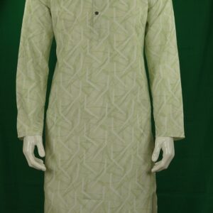 Light Green & Light Orange Color Striped Embroidered Panjabi