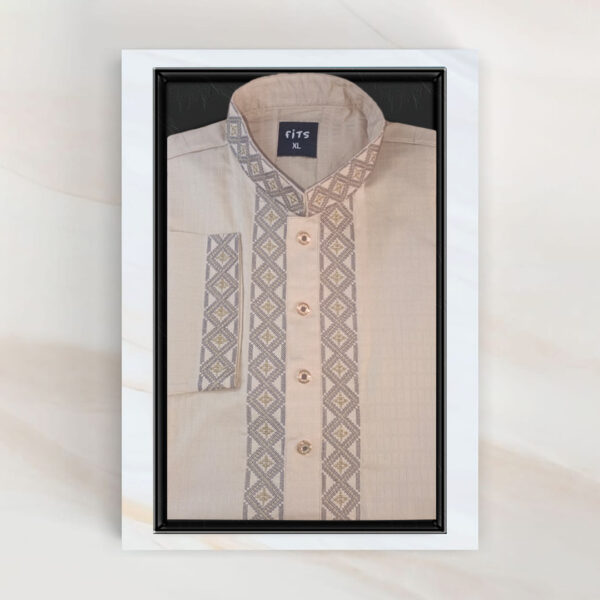 Brown Color Fits Men’s Panjabi With Collar, Cuff and Chest Embroidery