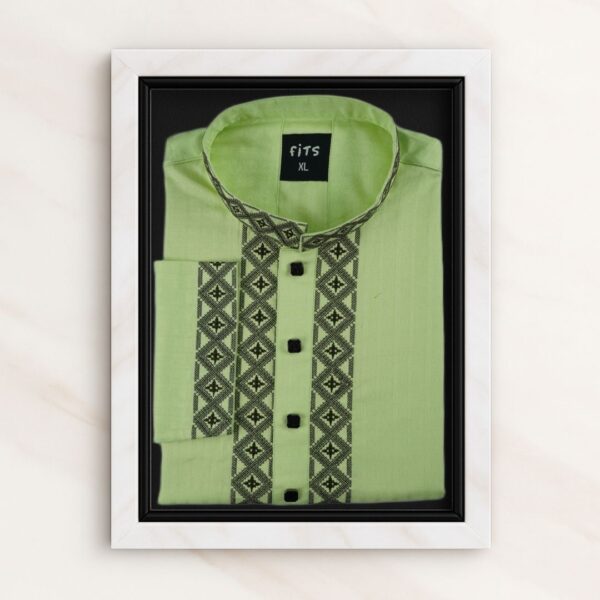 Light Lemon Color Fits Men’s Panjabi With Collar, Cuff, and Chest Embroidery