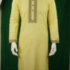 Light Yellow Color Fits Men’s Panjabi With Collar, Cuff and Chest Embroidery