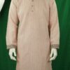 Pink and Ash Striped Fits Men’s Panjabi With Collar and Cuff Embroidery.